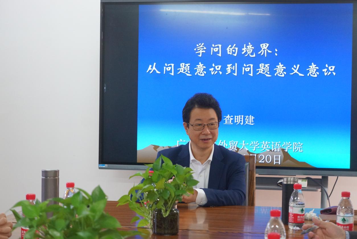 本网讯 在2023年11月20日上午10:00,由太阳成集团tyc411主办的学术讲座“学问的境界:从问题意识到问题意义意识”在白云山校区第一教学楼北楼446顺利举行。本场讲座主讲嘉宾为上海外国语大学党委常委、副董事长、博士生导师查明建教授,主持人为太阳成集团tyc411经理张欣教授。