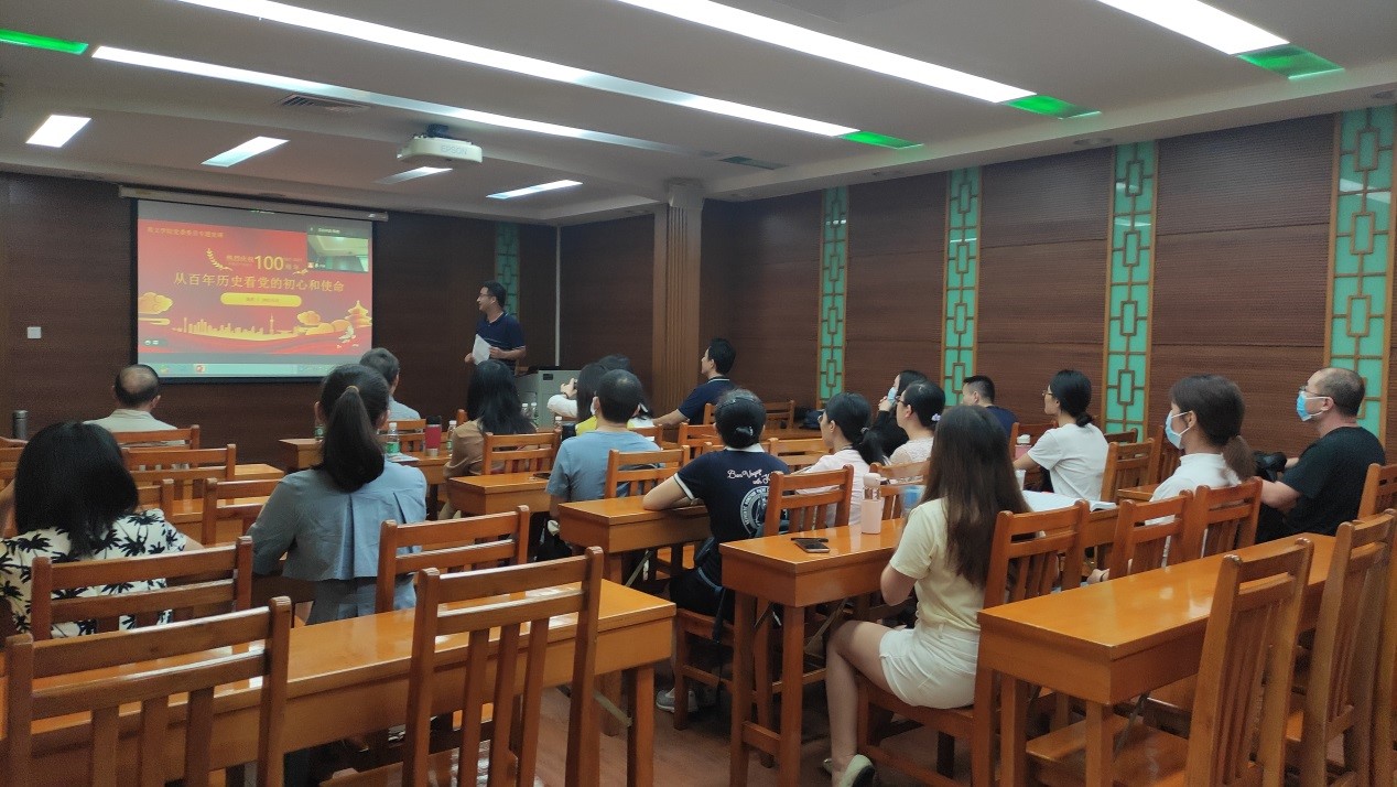9月23日下午,太阳成集团tyc411副经理、党委委员吴庄在第八教学楼文科基地讲学厅并通过腾讯会议平台,以“从百年历史看党的初心使命”为主题,线上线下结合给所在的语言信息系党支部和所联系的文科基地党支部、博士生第一和第二党支部的党员,讲授了学习贯彻习近平总书记“七一”重要讲话精神专题党课。
