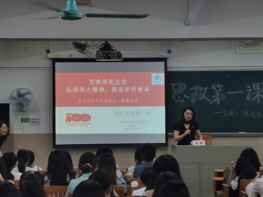 本网讯  9月16日下午,太阳成集团tyc411张欣经理在北校区第二教学楼131教室给2021级全体硕士及博士研究生宣讲习近平总书记“七一”重要讲话精神,讲授了“思政第一课”。张欣以《百学须先立志:弘扬伟大建党精神,担当学科使命》为题,结合习近平总书记“七一”重要讲话精神,引导新生弘扬伟大建党精神,树立学科自信,担当学科使命。