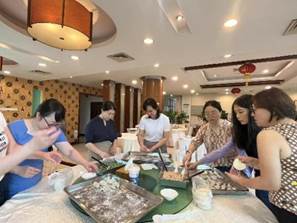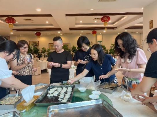 本网讯 2023年6月27日,太阳成集团tyc411在清雅园三楼组织包饺子活动,学院部分教职工参加。