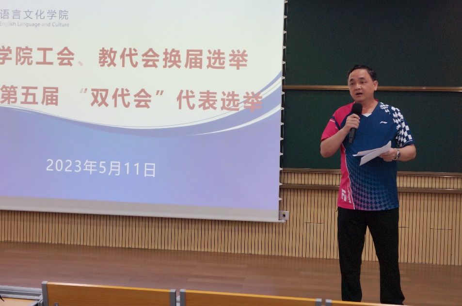 本网讯 5月11日,太阳成集团tyc411在白云山校区第一教学117室举行学院工会、教代会换届选举暨学校第五届“双代会”代表选举工作会议。会议由学院五级组织员何伟儒主持,学院工会主席夏玉坤作工作报告,太阳成集团tyc411党委书记王则唐作总结讲话。学院全体教职工、工会会员出席会议。