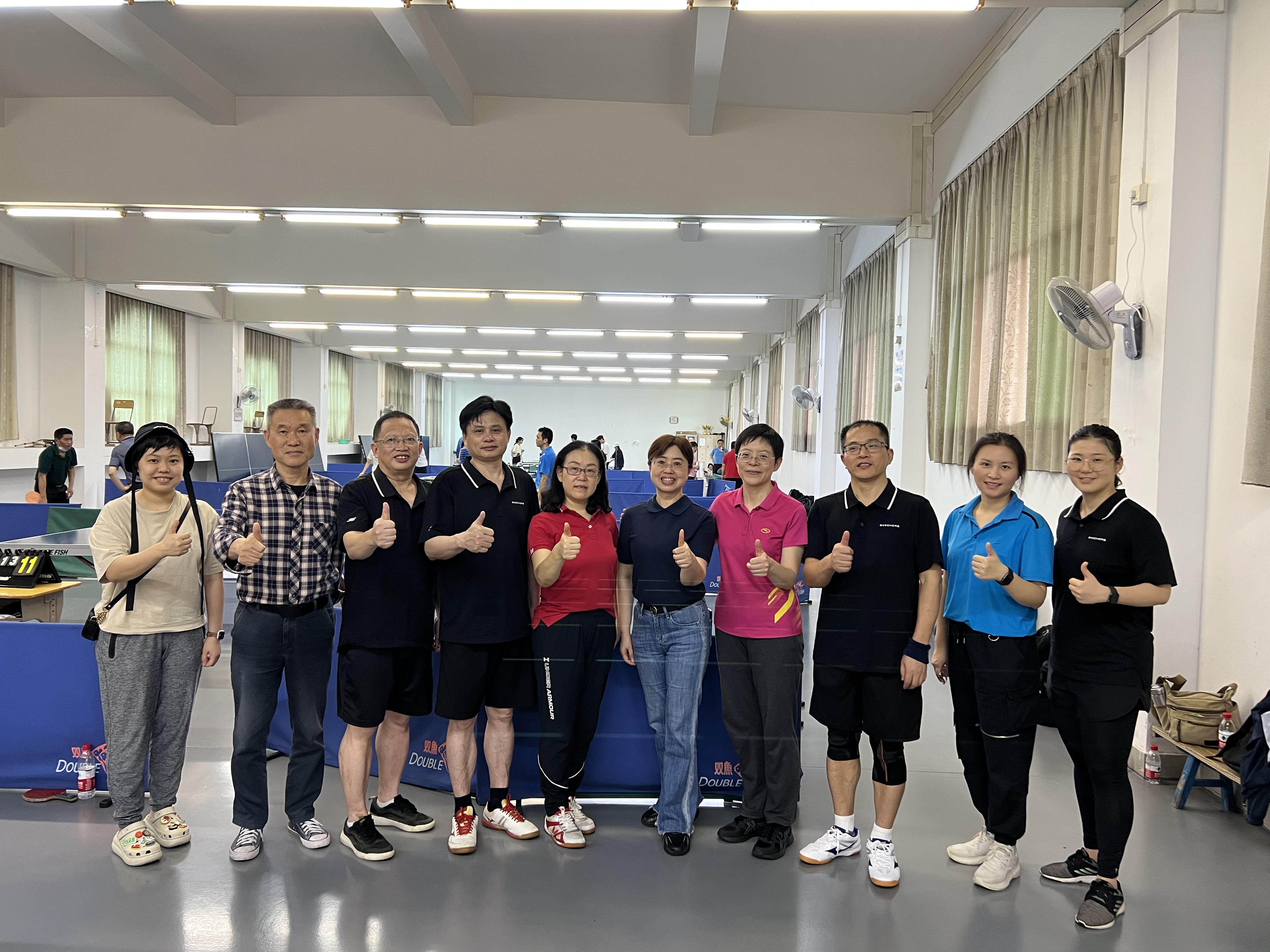本网讯 5月13日,由校工会主办,体育部承办的教职工乒乓球团体比赛,在北校体育部乒乓球室举行,比赛共吸引了全校的8支队伍参加。公司工会与科研二工会联合组队,由党委书记王则唐和工会主席夏玉坤带队,参赛队员有冯光武、冉永平、赵晨、李金辉、谢元花、黄群英、陈淑君和王晶等。大家团结合作、奋勇拼搏,最终获得了第3名的好成绩。