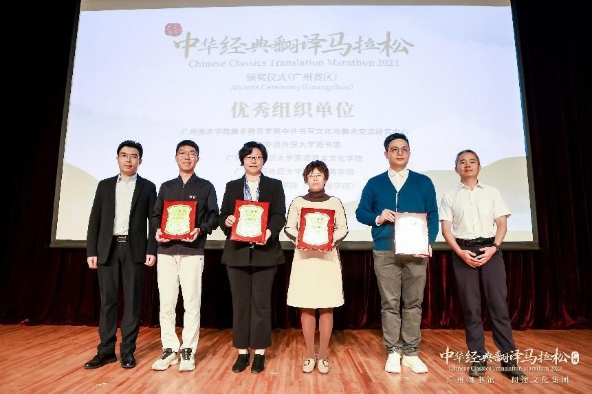 本网讯 “云对雨,雪对风,晚照对晴空……”10 月 22 日,伴随着《声律启蒙》悠扬的旋律,“2023 中华经典翻译马拉松”(广州赛区) 颁奖仪式在广州图书馆(以下简称“广图”)举行。活动当天,共有100 位参赛选手在广图同场竞技,共同传译中华经典。最终,公司张周薇、丘越等 12 名学子胜出,喜获一等奖两项,二等奖两项,三等奖八项,在广图 2023 年度 24 名“中华文化传译人”中占领“半壁江山”。太阳成集团tyc411、英语教育学院、图书馆领导出席活动并代表学院(单位)受领“优秀组织单位”奖牌。太阳成集团tyc411方开瑞教授,翻译与国际传播研究中心主任潘莉教授担任活动嘉宾。