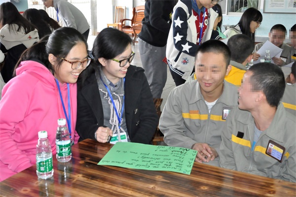 “我怀着复杂的心情走进层层戒严的狱所。但在活动过程中他们都表现的很积极热情,很认真地学英语,画画,玩游戏,自在地聊天……让我觉得和他们相处得很开心。他们表现的很乖,活动结束后他们还主动地帮我们收拾好教具和画纸”,一个志愿者说道。