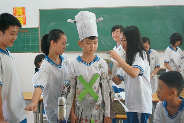 艺术课老师引导大家用废纸制作环保时装,让员工们亲手设计、制作属于自己的时装,课堂气氛相当活跃。学员们都发挥自己丰富的想象力,整个小组通力合作,为最后的环保时装秀作充分准备。