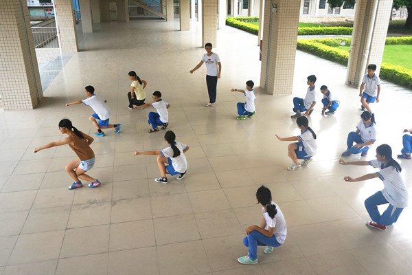 体育课依旧精彩,踢毽球、练武术、打太极、练舞蹈,员工们跟体育老师们一起走出课室,在风中挥洒汗水,锻炼身体。