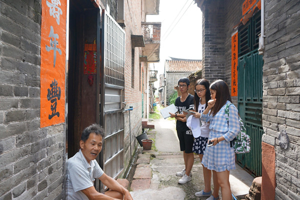 队员们走街串巷,向村民们发放相关的调查问卷,认真了解当地居民的文化生活状况,通过细心分析,依据调查结果提出更深入的问题。组员们从当地公共基础设施状况,自然生态环境,管理保护以及旅游业发展工程等各个角度出发,全面认识考察西溪古村。