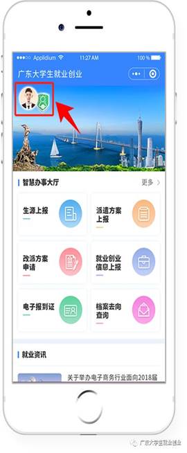 1、 登录“广东老员工就业创业”小程序,可选择从首页进入“就业创业信息上报”窗口。