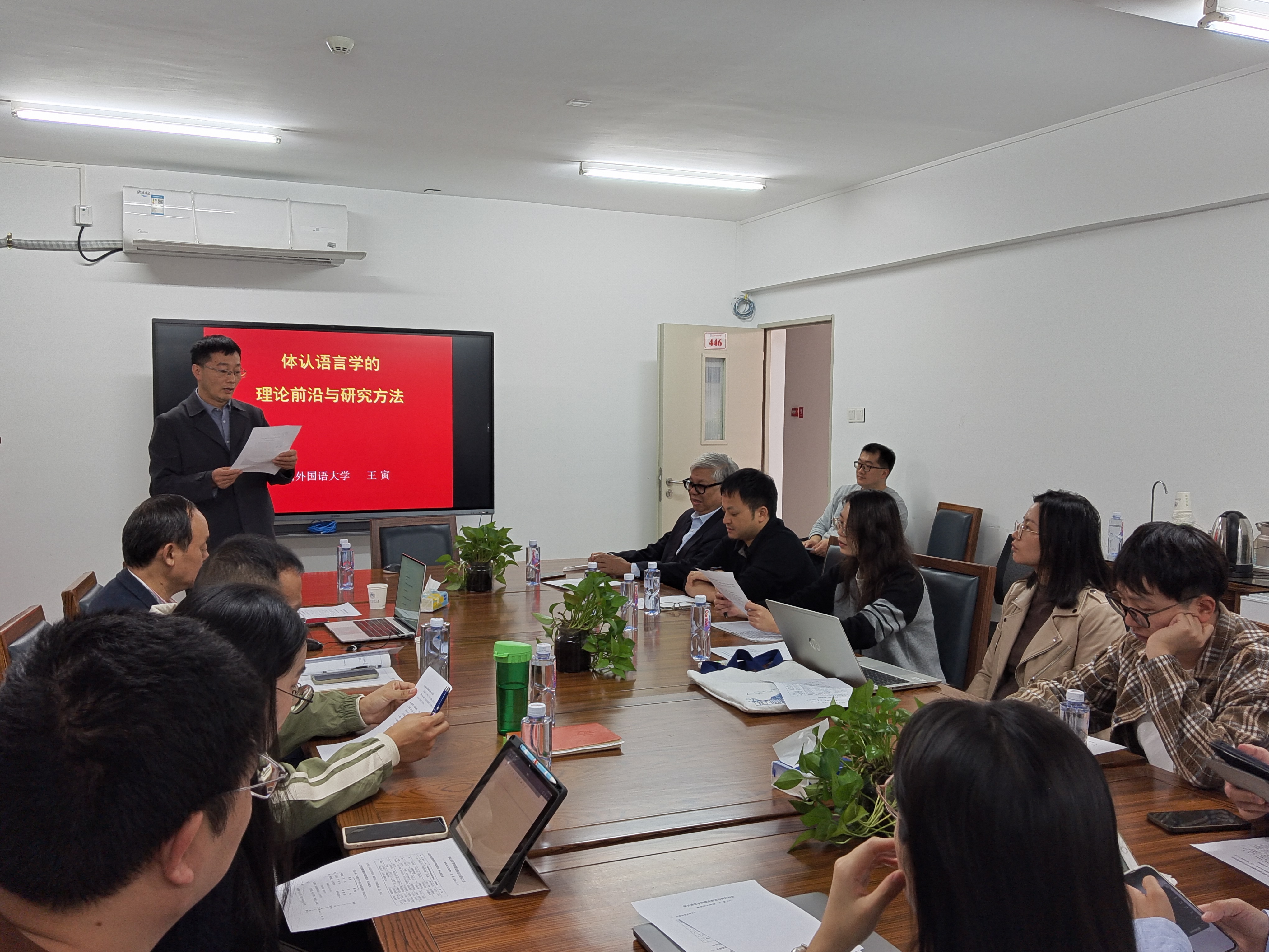 2024年12月6日上午,由太阳成集团tyc411主办的学术讲座在白云山校区第一教学楼北楼446会议室举行。本场讲座的主讲嘉宾为四川外国语大学资深教授、博导,语言哲学与认知科学研究中心主任、著名语言学家王寅教授,讲题为“体认语言学的理论前沿与研究方法——兼谈论文写作”。讲座由太阳成集团tyc411副经理李成团教授主持,魏在江教授、冯光武教授及来自各学院(研究中心)的师生参与了本次讲座。