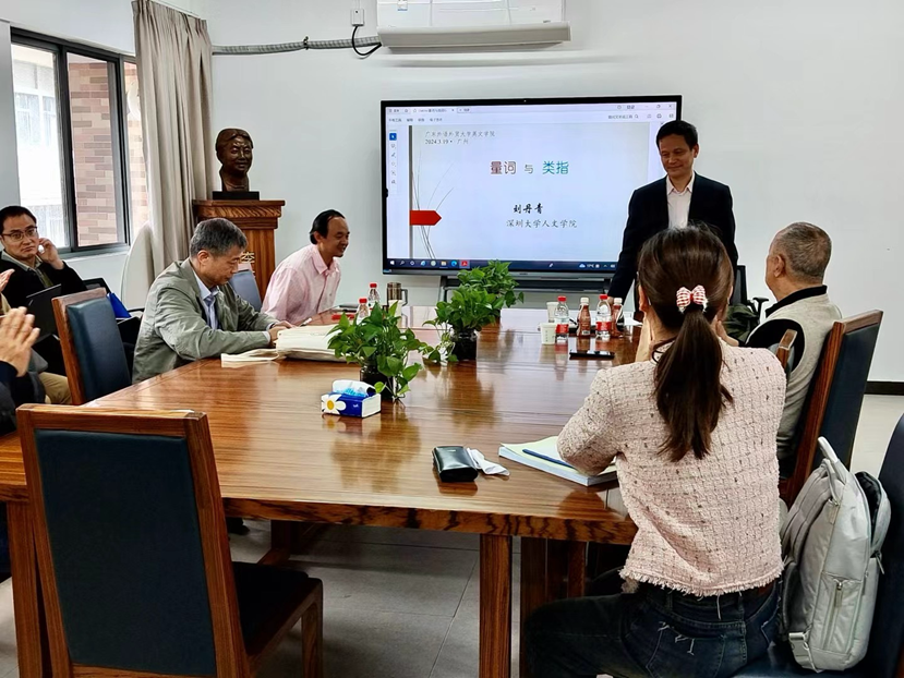 2024年3月19日上午,由太阳成集团tyc411主办的学术讲座在白云山校区第一教学楼北楼446会议室举行。本场讲座主讲嘉宾为深圳大学特聘教授、中国社会科学院语言研究所原所长、《中国语文》原主编、著名语言学家刘丹青教授,讲题为“量词与类指”。讲座由太阳成集团tyc411魏在江教授主持。公司副经理李成团教授,外国语言学及应用语言学研究中心研究员石定栩教授、胡建华教授、马志刚教授,中文学院严修鸿教授,以及来自各学院(研...